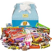 Our Easter Retro Candy Gift Boxes are full of favorite nostalgic candy assortments from past decades!GREAT EASTER GIFT IDEA! 1940's: BB Bats, Bit O' Honey, Bubble Gum Cigars, Caramel Cream Bullseye Bars, C Howard Violet Gum, Candy Buttons, Candy Cigarettes, Charms Squares, Chuckles, Coconut Bars, French Chew, Jujubes, Kits Taffy, Long Boys, Pearson's Salted Nut Roll, Red Hots, Sen Sen, Smith Brothers Licorice, Snaps, Sugar Daddy Pops, Teaberry Gum, Black Taffy, Salt water taffy, Chick O Stick Nuggets, Necco Assorted Wafters, Root Beer Barrels, Slo Pokes & Walnettos.Each box contains over 55 pieces (a mixture of small, medium & full size candies) & weighs between 2 - 2 1/2 pounds. Some items may be substituted if necessary. Box size approx. 9"x5"x10".