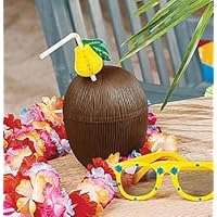 Top off your tables with these luau Plastic Coconut Cups. The bright colors and fun designs of these cups are sure to add a special touch to your luau party. Cups hold 18 oz. 1 per package.