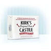 Since 1839, Kirk's Original Coco Castile Soap has given the consumer a high quality, all natural soap at an affordable price. Current national market research ranks Kirk's Original Coco Castile Soap as the top selling all-natural bar soap."Castile" originally referred to the highly-prized vegetable based soap produced in Castile, Spain. For centuries this soap was considered "the soap of royalty" because of its luxurious lather and gentleness to the skin. Today, "Castile" refers to any vegetable based soap. Why ALL-Natural? - No Animal By-Products - Never Tested on Animals - Hypoallergenic - Biodegradable - No Synthetic Detergents